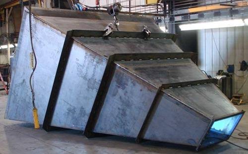 Our steel fabrication services include manipulating and processing steel into any industrial or domestic application. This includes screw conveyors, hoppers of any shape or size, chutes of any shape or size, ducting, industrial cyclone separators, industrial radial fans and housings, tipper storage bins, stackable bins, fluid tanks, universal bin lifters, forklift safety cages, and plate development.